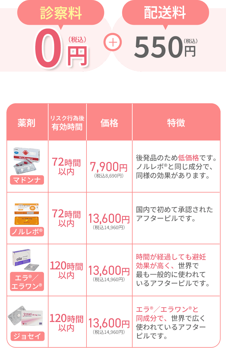 当院が取り扱うella®、ellaOne®、joseiは、国内未承認の医薬品です。そのため、万が一副作用が出た場合は、国の医薬品副作用被害救済制度の対象外となります。
